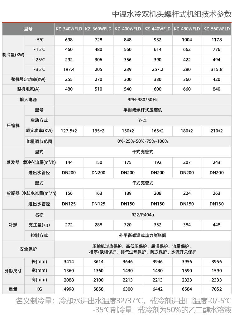 ◆中溫螺桿式冷水機組是采用螺桿式壓縮機提供制冷動力源,以冷卻水塔作為冷凝介質(zhì),雙機頭輸出馬力220HP~560HP。出水溫度控制范圍-15℃~-25℃.