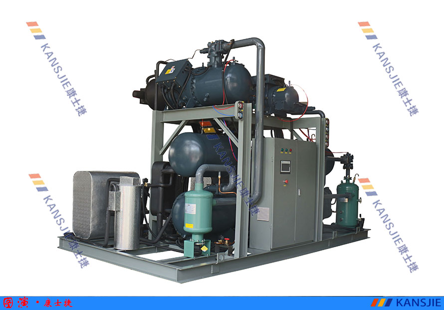 ◆螺桿復疊式低溫機組,低溫級采用螺桿壓縮機提供制冷動力源,以冷卻水塔作為冷凝介質,機組為體化設計,方便安裝和維護,機組輸出馬力從40HP-160HP,低溫出液溫度控制范圍-45℃~-70℃.