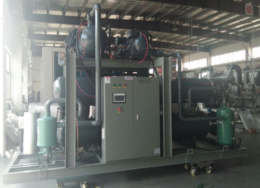 6、高效、節能 :大冷量機組采用半封閉螺桿壓縮機帶經濟器運行,提高了運行效率,同時低溫級蒸發器、冷凝器可選用進口品牌316L不銹鋼板式換熱器,采用電子膨脹閥進行制冷劑的微量準確調節,確保了機組部分載荷及滿負荷均能高效節能運行;