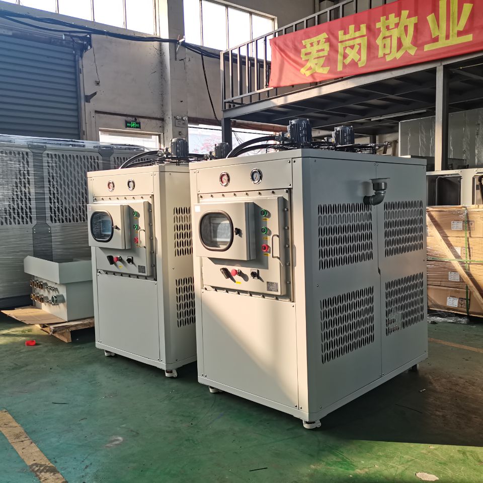 反應(yīng)釜加熱制冷控制系統(tǒng) 反應(yīng)釜夾套控溫制冷機(jī)組按冷卻方式分有風(fēng)冷式和水冷式,風(fēng)冷式是通過風(fēng)扇以空氣為冷凝方式,需放于通風(fēng)好的環(huán)境;水冷式是通過冷卻塔以冷卻循環(huán)水為冷凝方式,需配套冷卻塔使用。